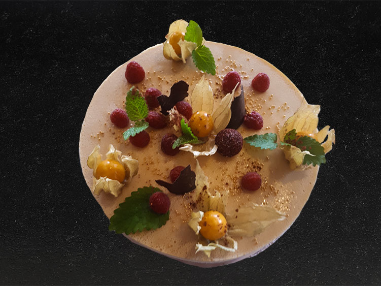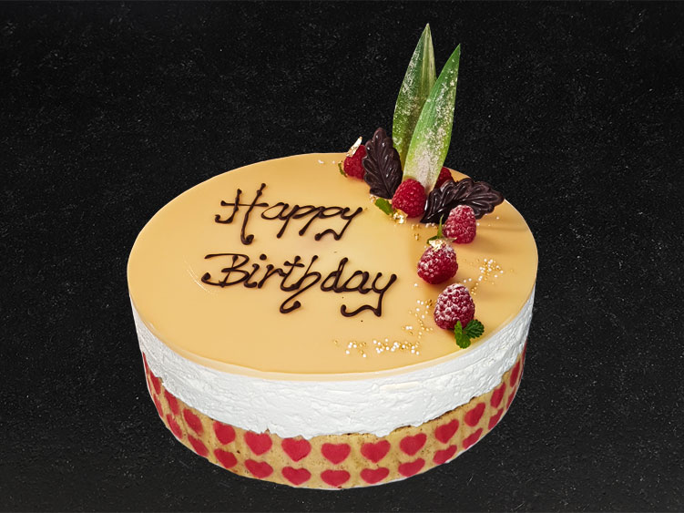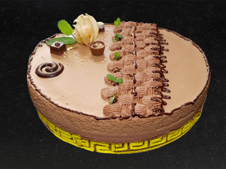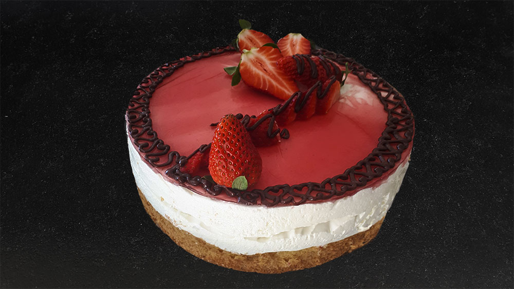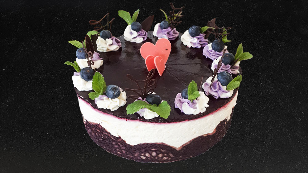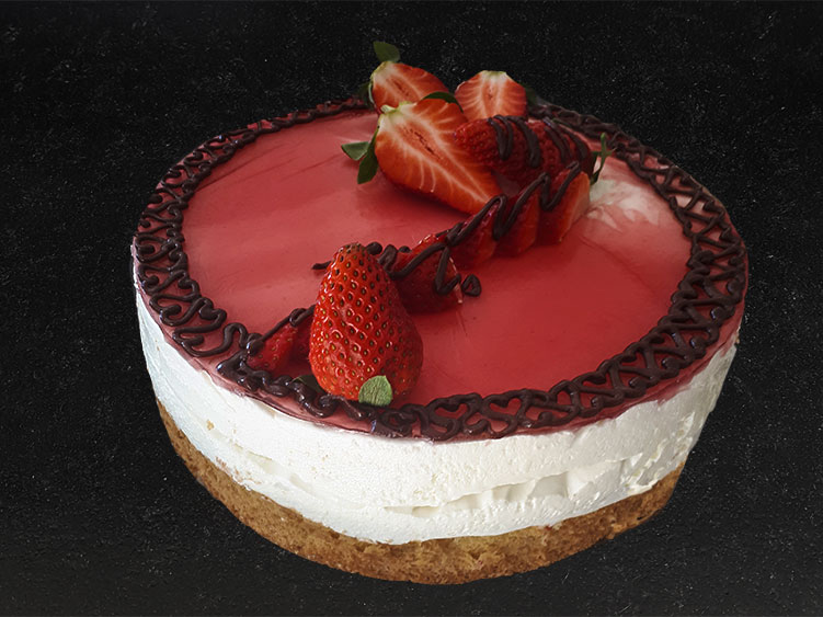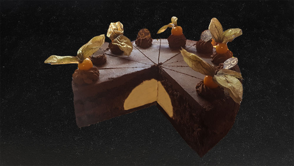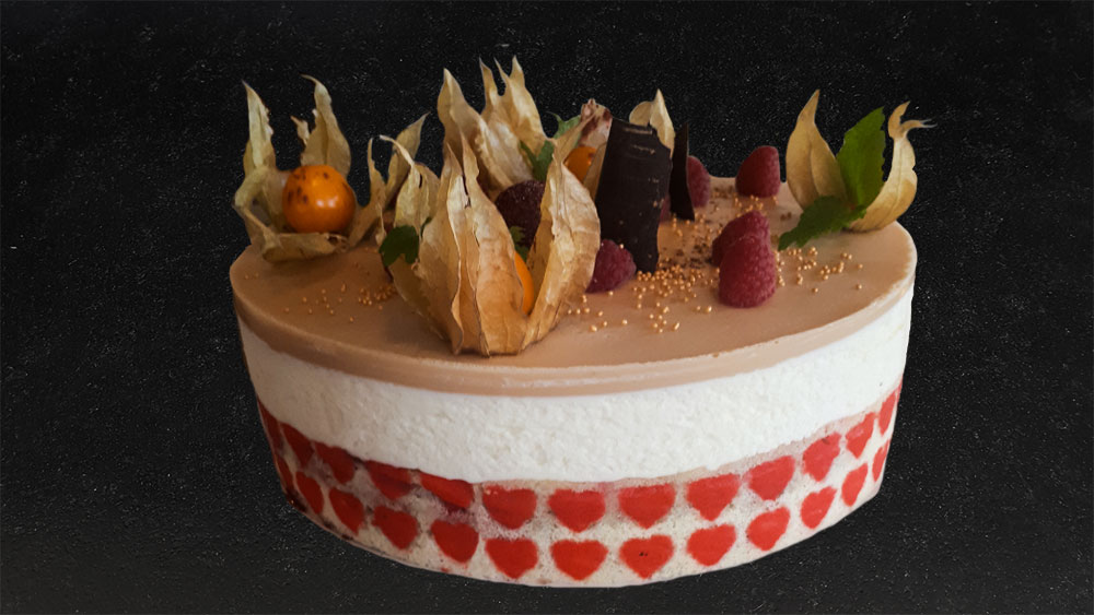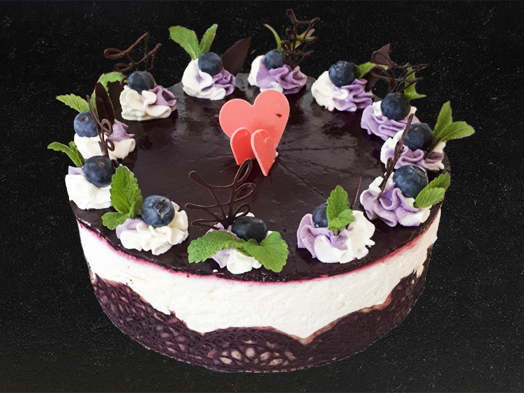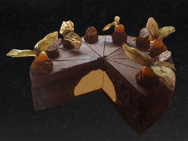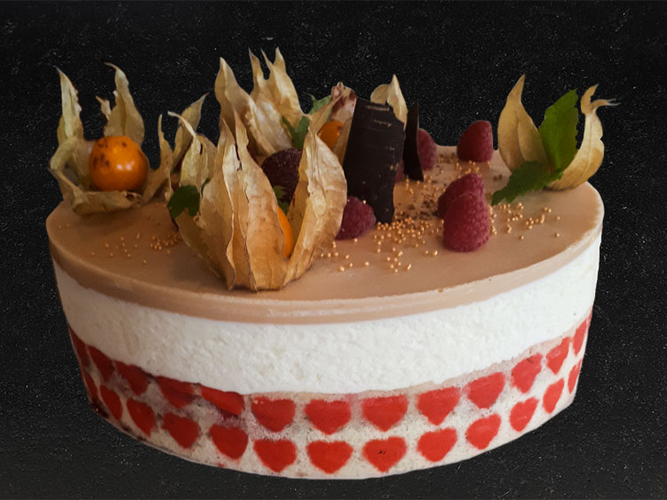 Der Boden kann aus verschiedenen Massen hergestellt werden. Je nach Geschmack füllen wir Ihr Werk dann mit verschiedenen Fruchtmoussen oder Schokoladen bzw. Cremen.