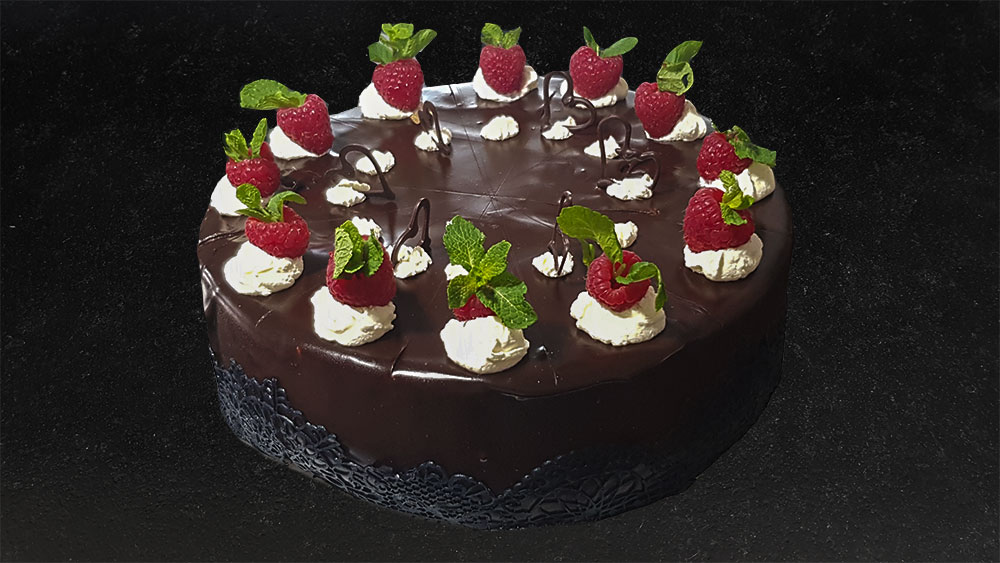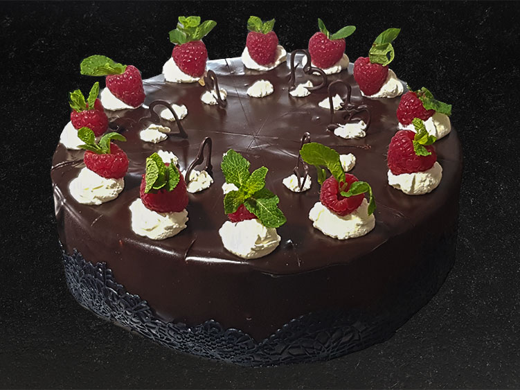 Fast deshalb, weil es bei mir keinen Fondant als Überzug gibt. Ihre Torte wird dafür mit einer köstlichen Ganache glaciert oder mit einem Fruchtspiegel versehen. Oder möchten Sie lieber ein Mirrorglace, damit das Kunstwerk eine spiegelnde Oberfläche bekommt.